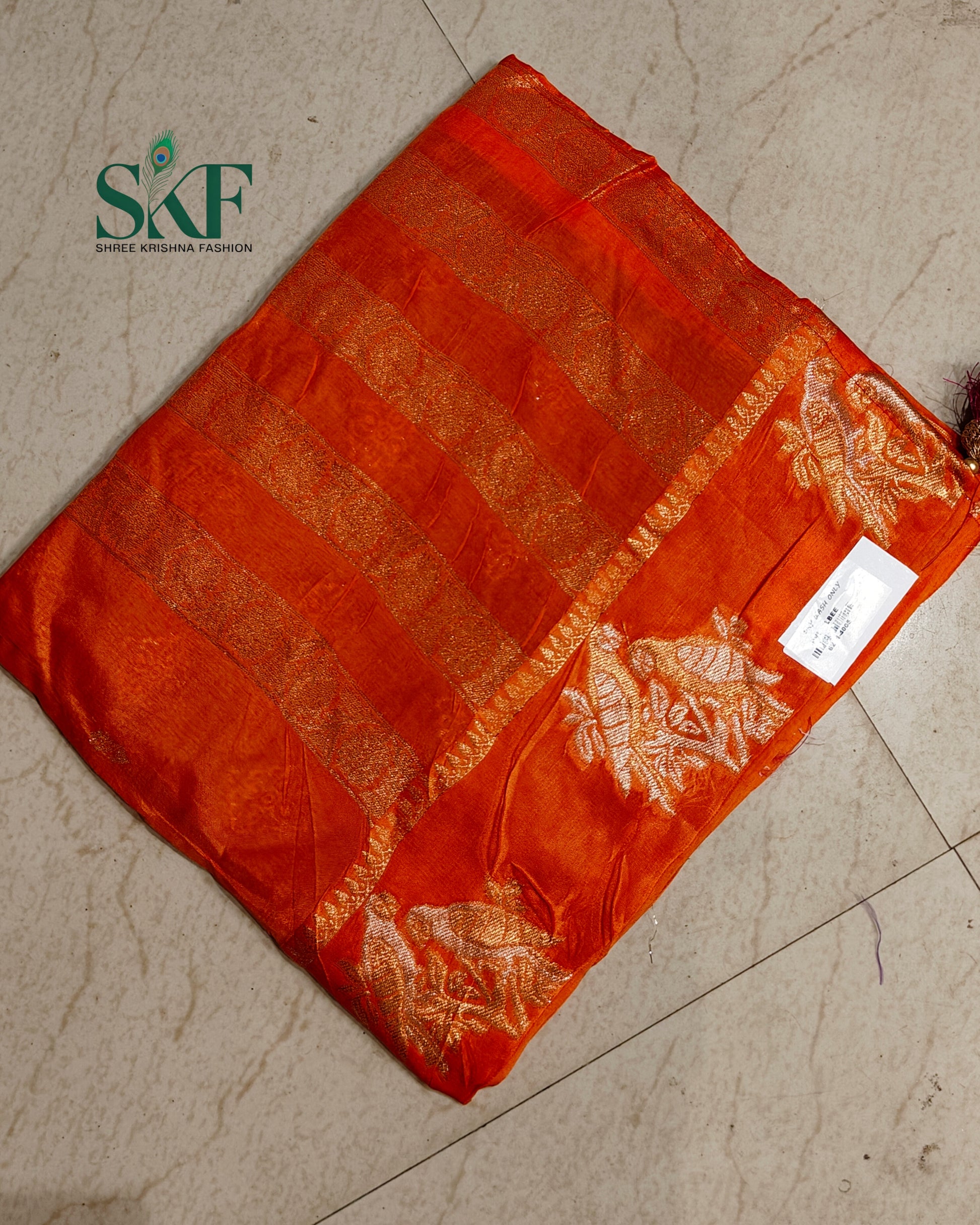 HO SILK PARROT BORDER ZARI BUTTY WEAVING WORK RUST ORANGE SAREE BY SKFBHOLUBHAI