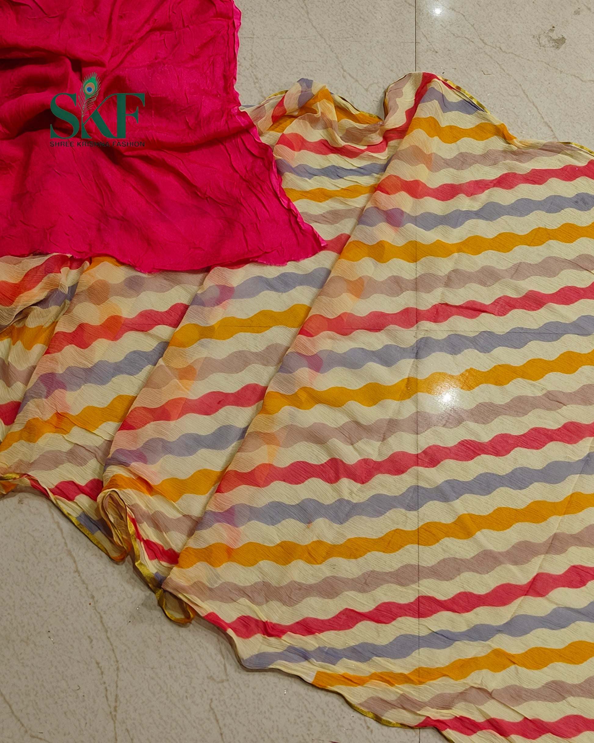 1 Pure Chiffon Saree (with Leheriya print and gold zari border)